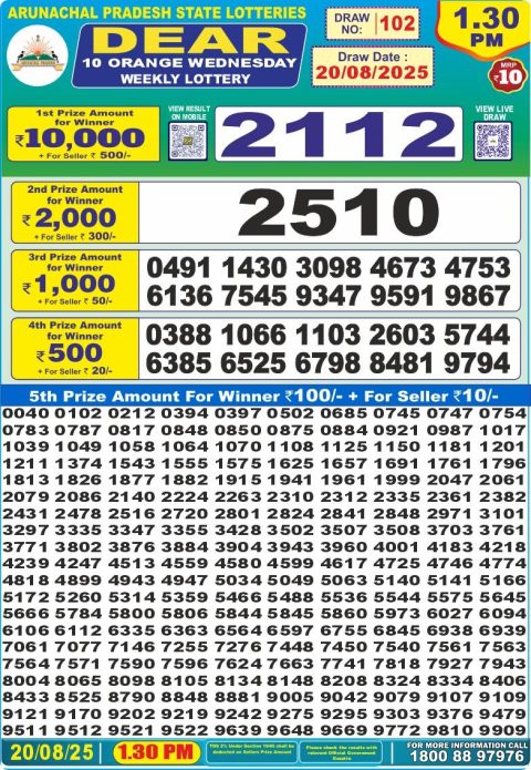 Dear 10 Daily Lottery 1:30PM Result 20.08.2025