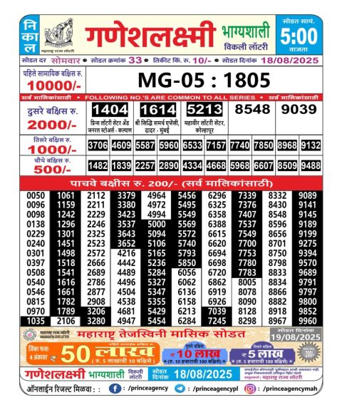 Maharashtra Weekly Lottery 4.15PM Result 18.08.2025