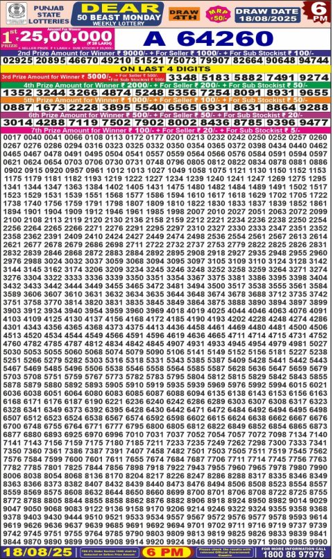 Dear 10 Daily Lottery 7PM Result 18.08.2025