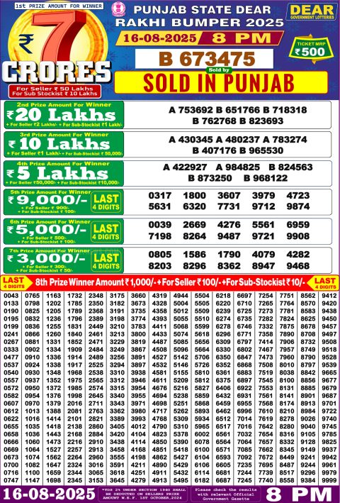 Dear 10 Daily Lottery 7PM Result 16.08.2025