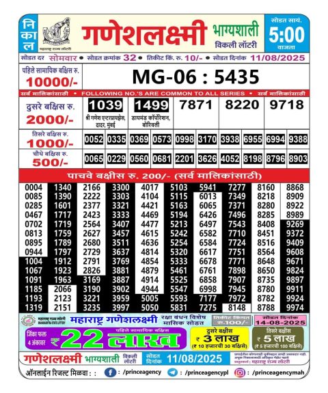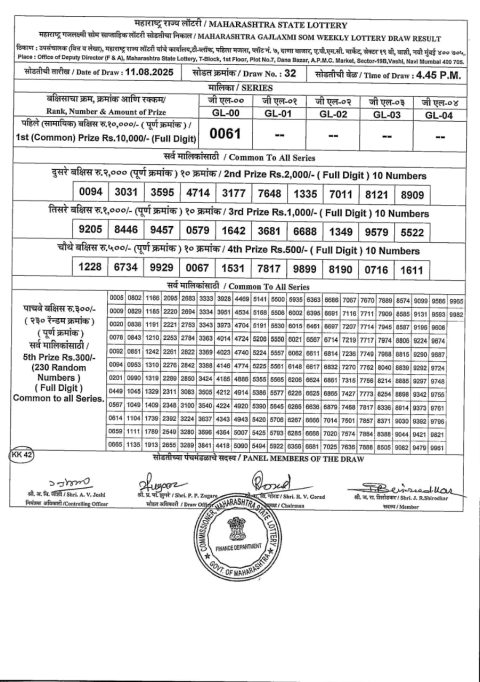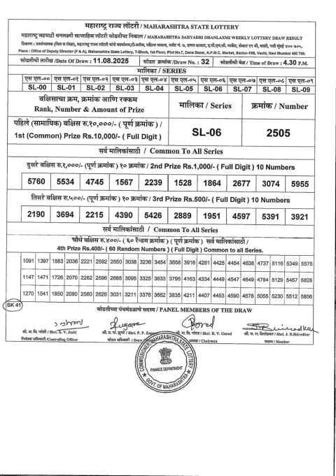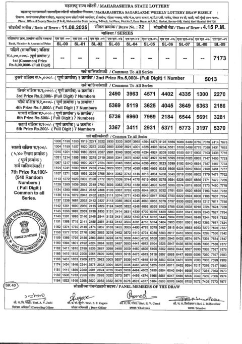 Maharashtra Weekly Lottery 4.15PM Result 11.08.2025