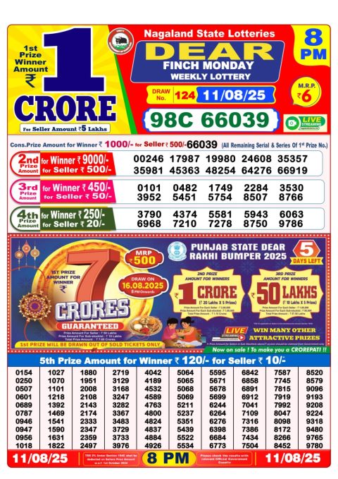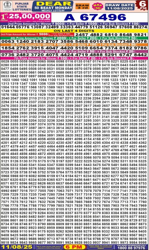 Dear Daily Lottery 6PM Result 11.08.2025