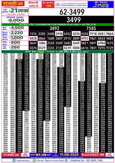 Rajshree 50 Weekly Lottery 7:30PM Result 11.08.2025