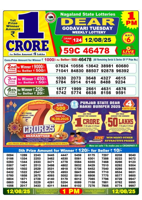Dear Daily Lottery 1PM Result 12.08.2025