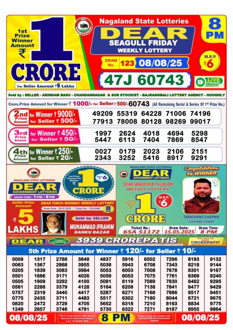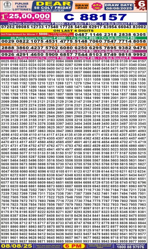 Dear 10 Daily Lottery 7PM Result 08.08.2025