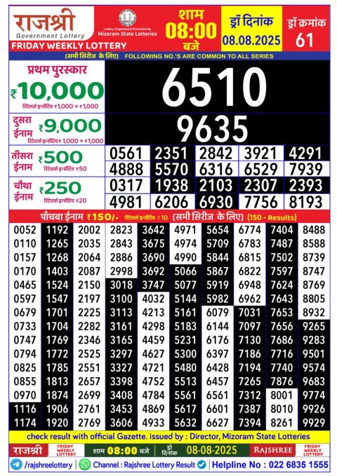 Rajshree Daily Lottery 8PM Result 08.08.2025
