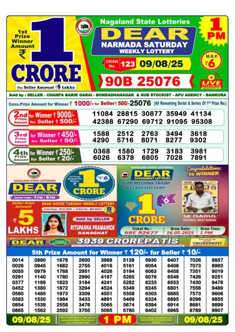 Dear 10 Daily Lottery 7PM Result 09.08.2025