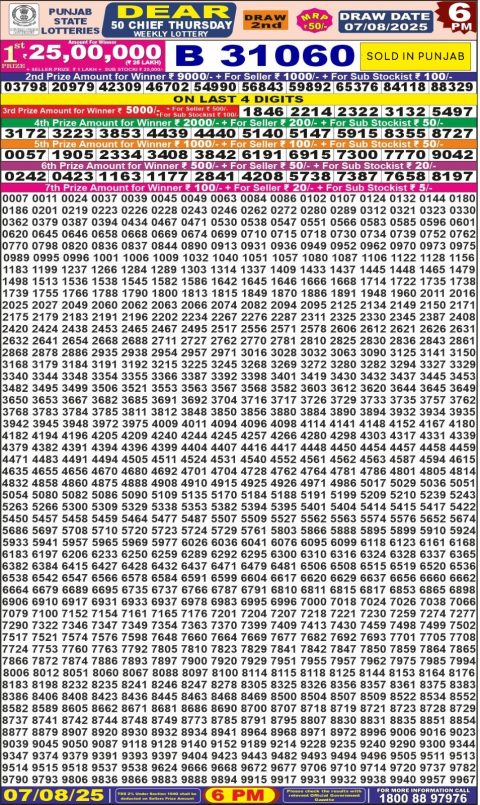 Dear 10 Daily Lottery 7PM Result 07.08.2025