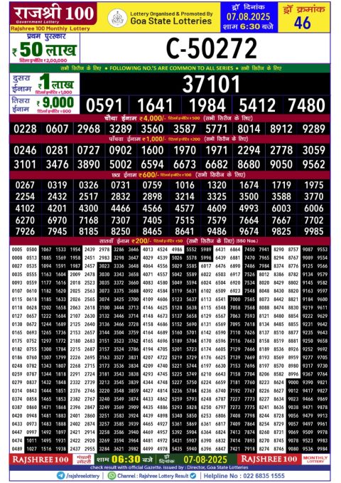 Rajshree Daily Lottery 8PM Result 07.08.2025