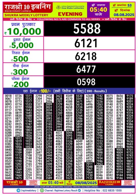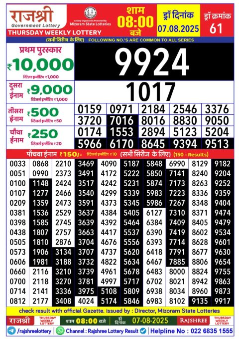 Rajshree Daily Lottery 1PM Result 08.08.2025
