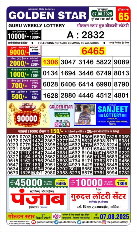 Golden Star Daily Lottery 9PM Result 07.08.2025