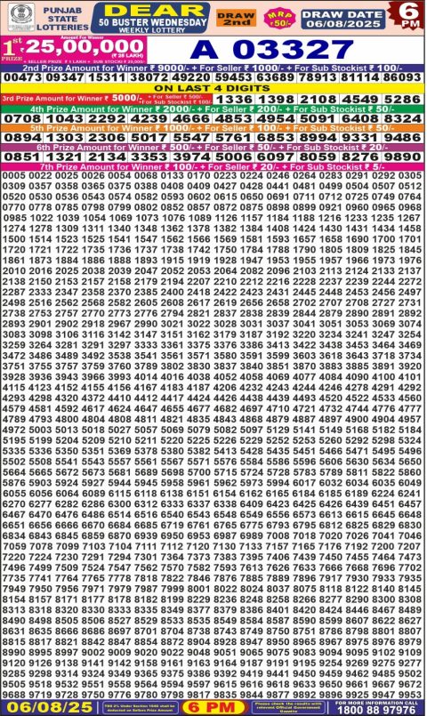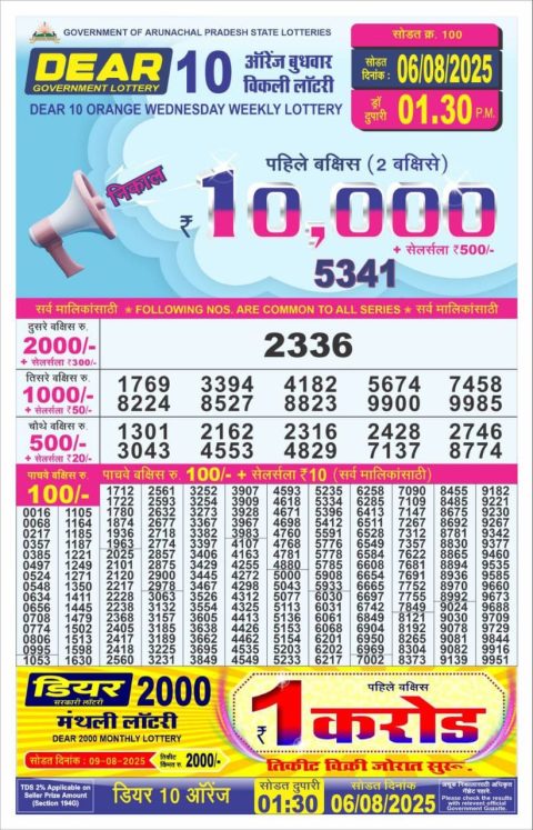 Dear 10 Daily Lottery 1:30PM Result 06.08.2025