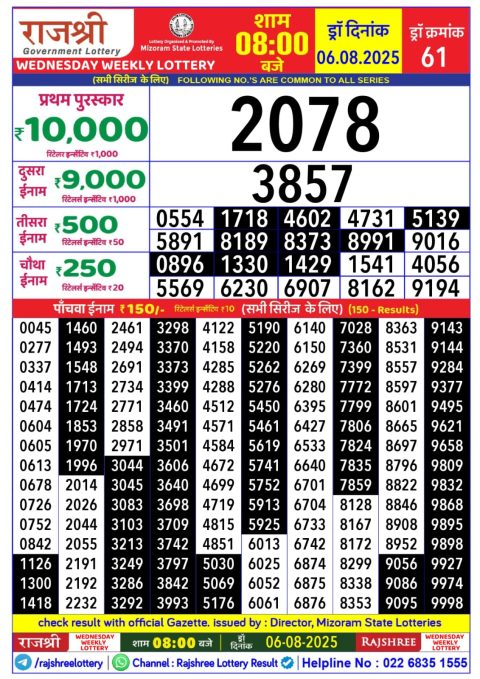 Rajshree Daily Lottery 8PM Result 06.08.2025