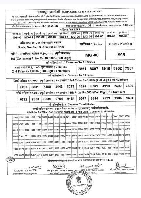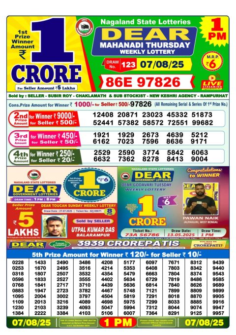 Dear 10 Daily Lottery 7PM Result 07.08.2025