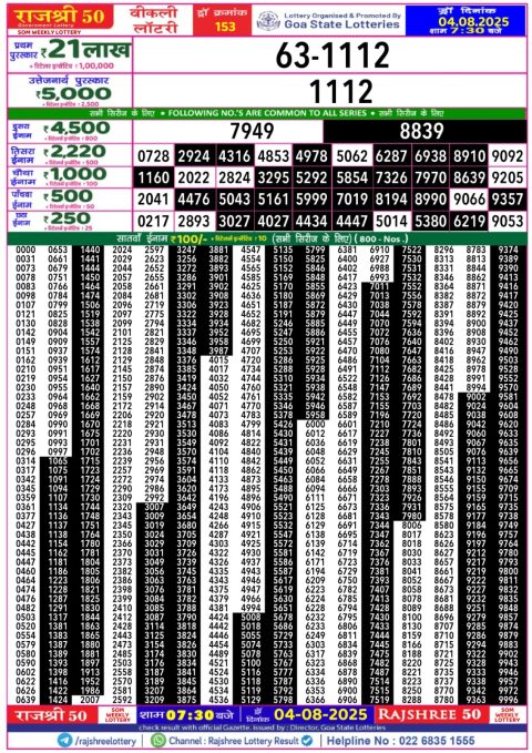 Rajshree Daily Lottery 4PM Result 05.08.2025