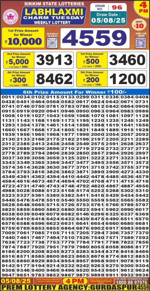 Labh Laxmi Daily Lottery 4PM Result 05.08.2025