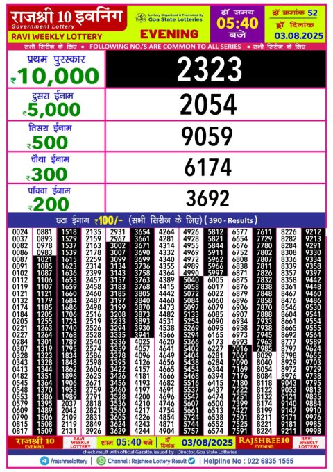 Rajshree Daily Lottery 8PM Result 03.08.2025