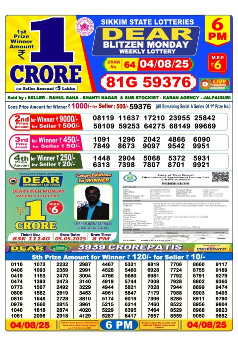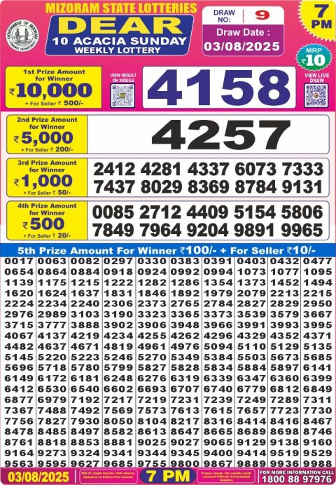 Dear 10 Daily Lottery 7PM Result 03.08.2025