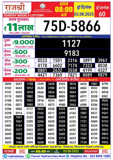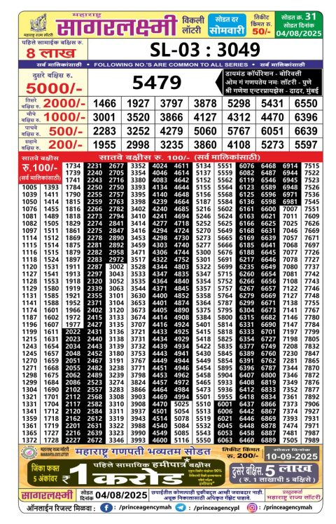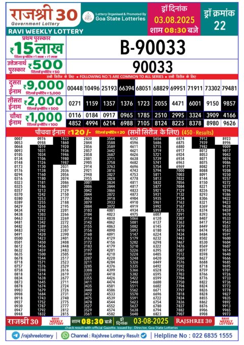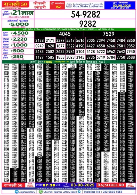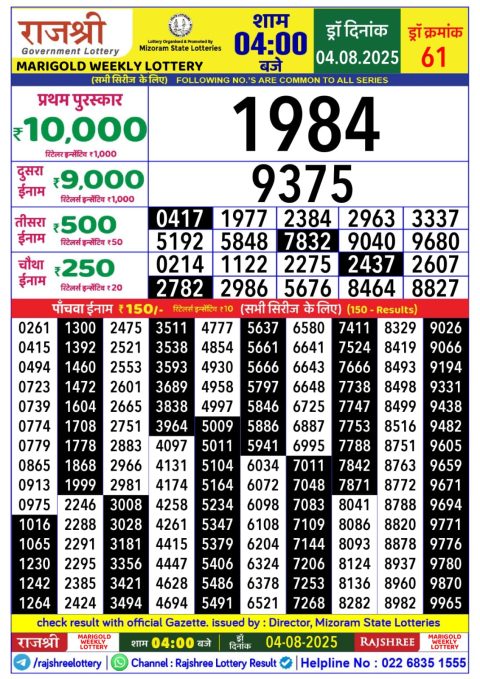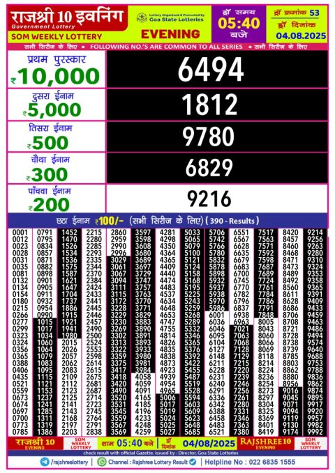 Rajshree Daily Lottery 1PM Result 04.08.2025