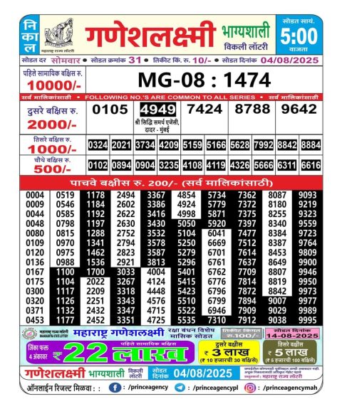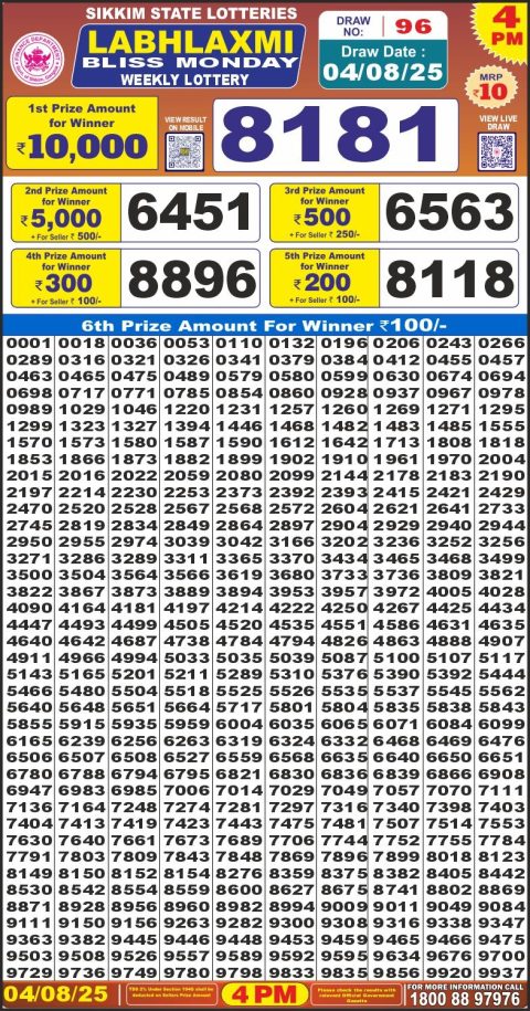 Labh Laxmi Daily Lottery 4PM Result 04.08.2025