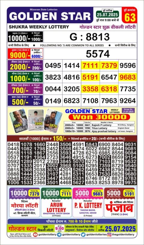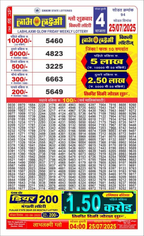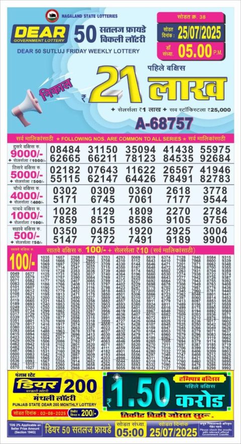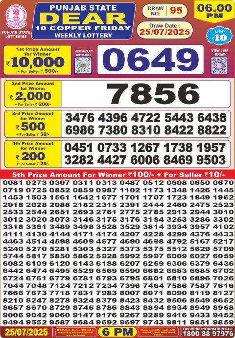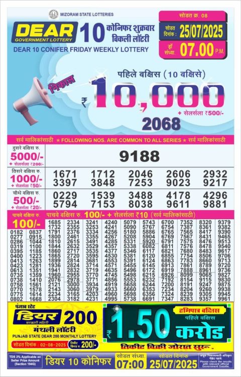 Dear 10 Daily Lottery 7PM Result 25.07.2025