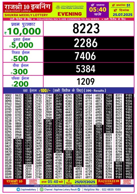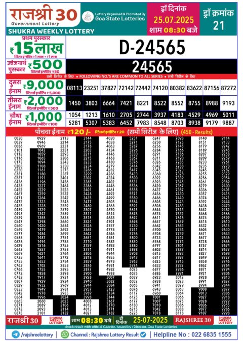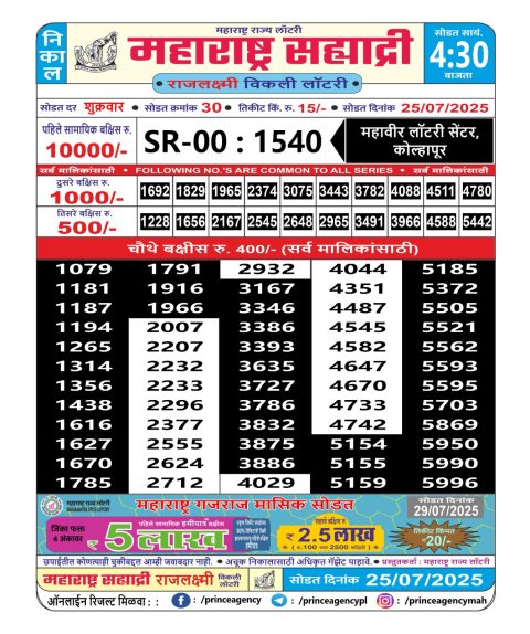 Rajshree Daily Lottery 4PM Result 25.07.2025