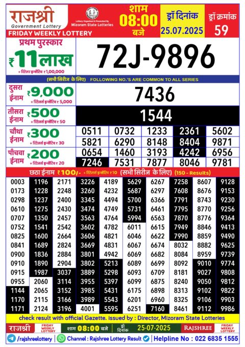 Rajshree Daily Lottery 8PM Result 25.07.2025