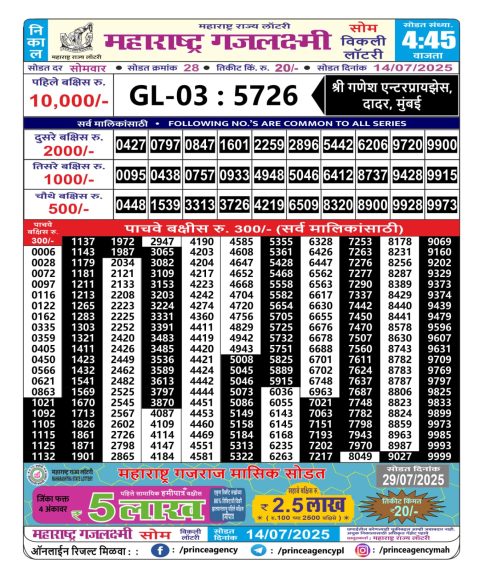Dear 50 Daily Lottery 5 PM Result 14.07.2025