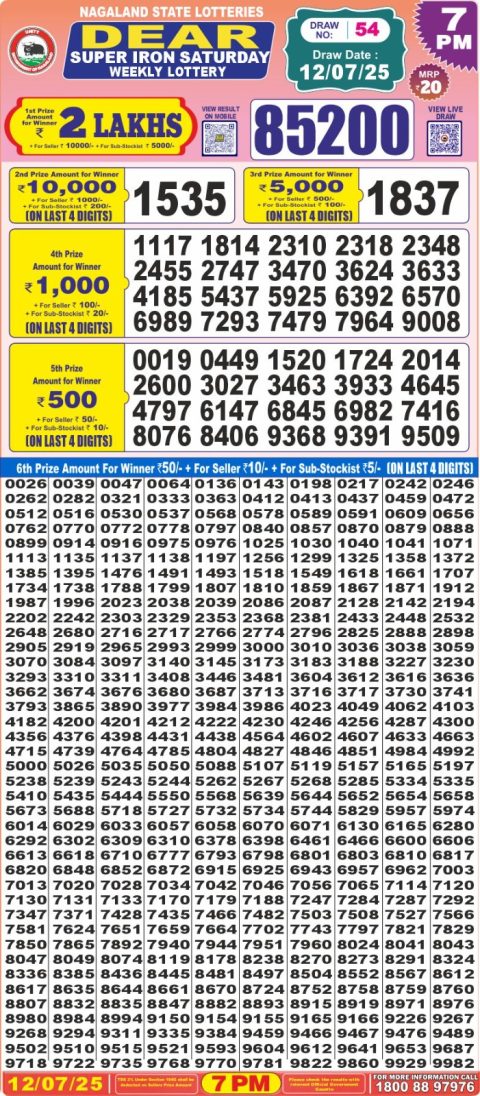 Dear Daily Lottery 6 PM Result 12.07.2025