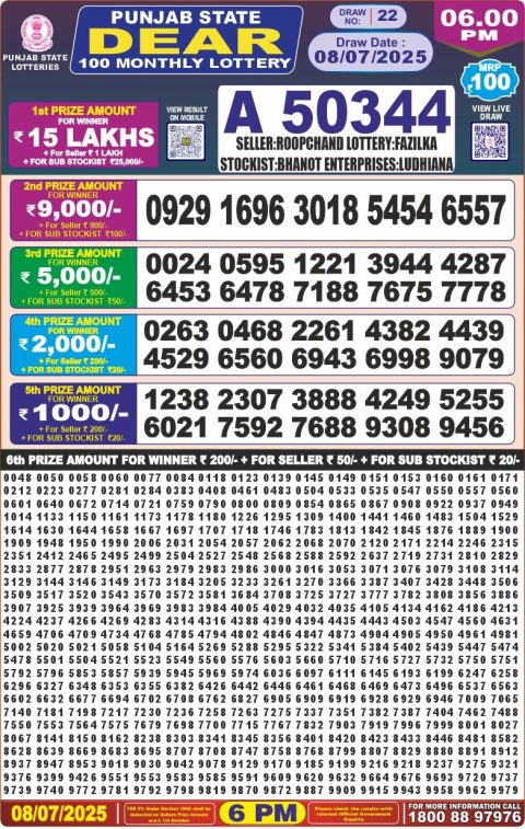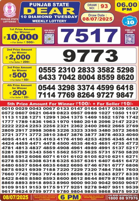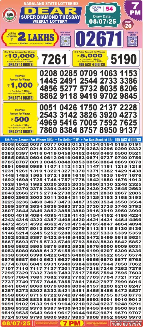 Dear Daily Lottery 6 PM Result 08.07.2025