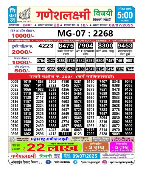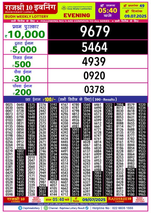 Dear Daily Lottery 1 PM Result 09.07.2025