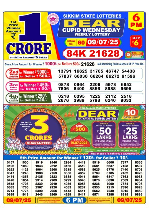 Dear Daily Lottery 6 PM Result 09.07.2025
