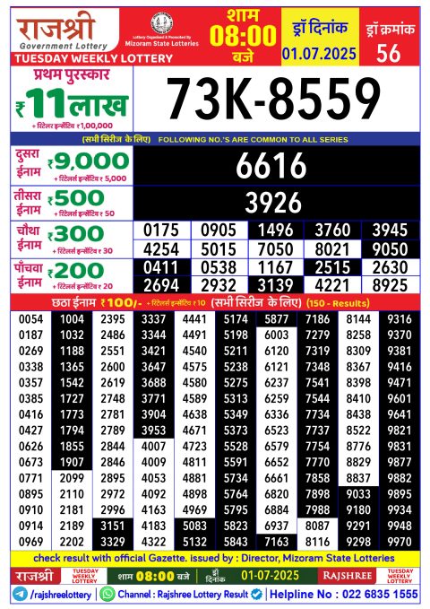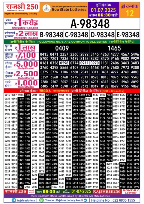 Dear Lottery 1:00 Pm Result 01.07.2025