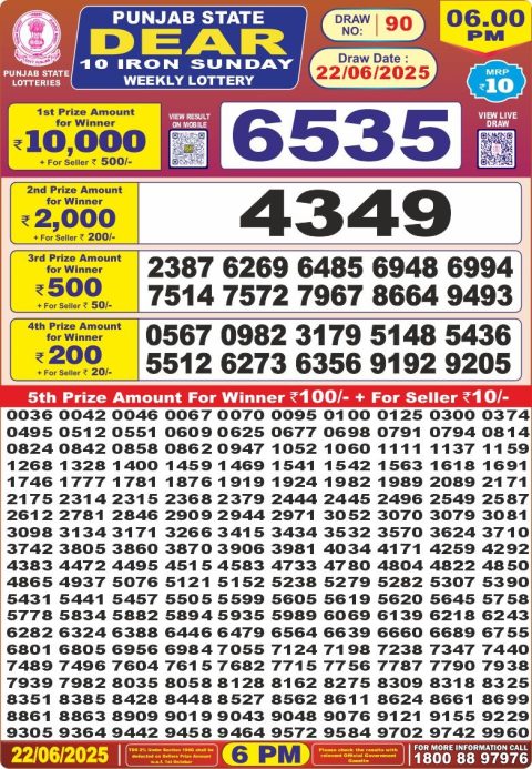 Dear 10 Daily Lottery 7 Pm Result 22.06.2025