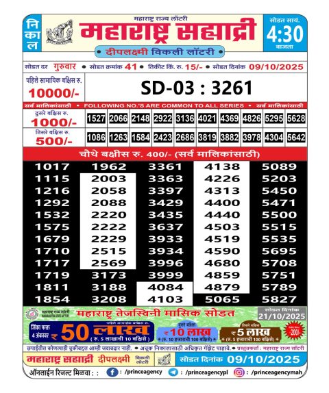 Maharashtra Akarshak Weekly Lottery Result 09.10.2025