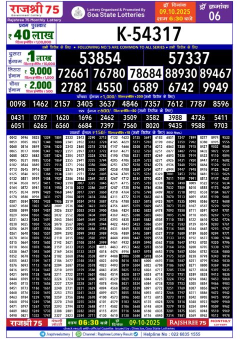 Rajshree 75 Monthly Lottery Result 09.10.2025