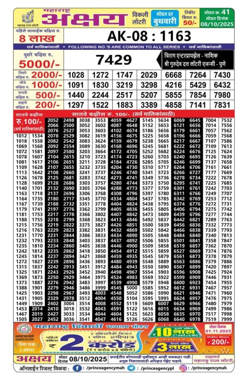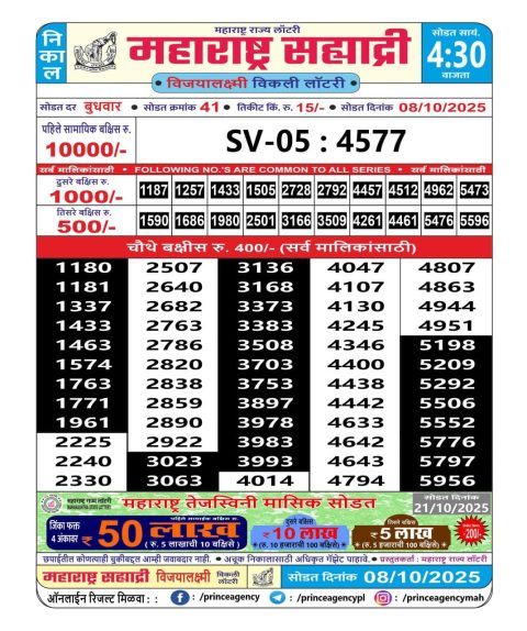 Maharashtra Weekly Lottery 4.15PM Result 08.10.2025