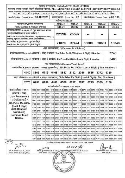 Maharashtra Dasara Bumper Lottery result 03.10.2025