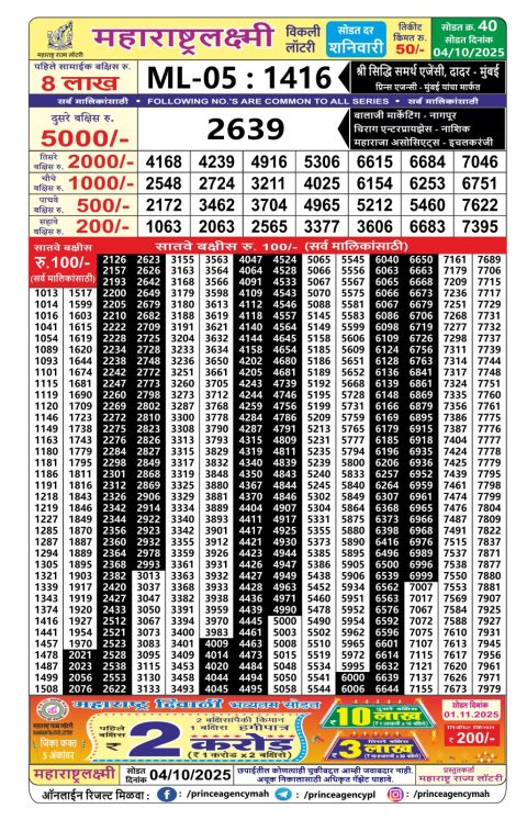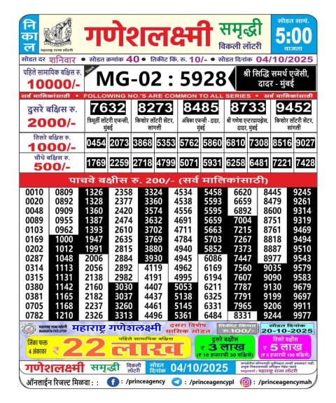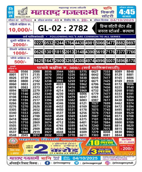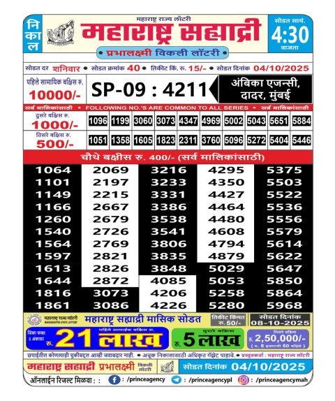 Maharashtra Weekly Lottery 4.15PM Result 04.10.2025