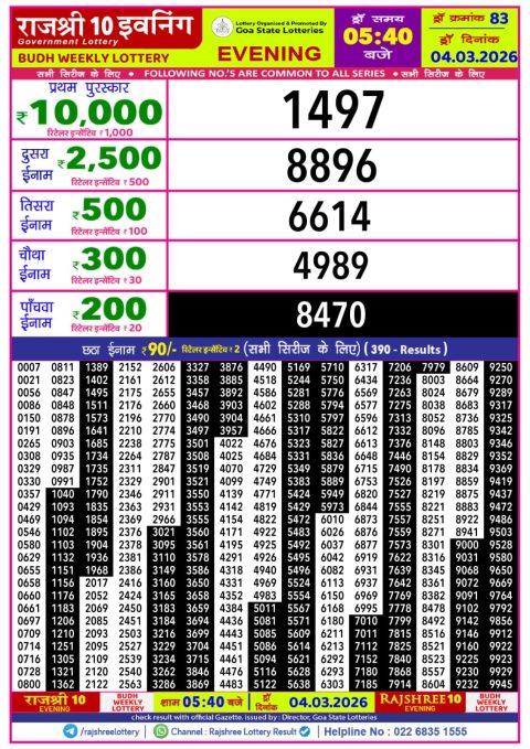 Rajshree Daily Lottery 4PM Result 04.03.2026