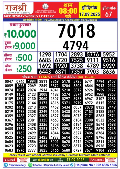 17 September 2025 8pm – Mizoram state Rajshree Lotteries 8pm Result has been declared for 17/09/2025 . First prize rupees…