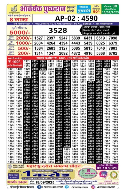 Maharashtra Weekly Lottery 4.15PM Result 18.09.2025