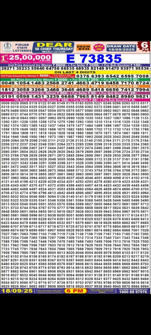 Punjab State Dear 50 Daily Lottery 6PM Result 18.09.2025