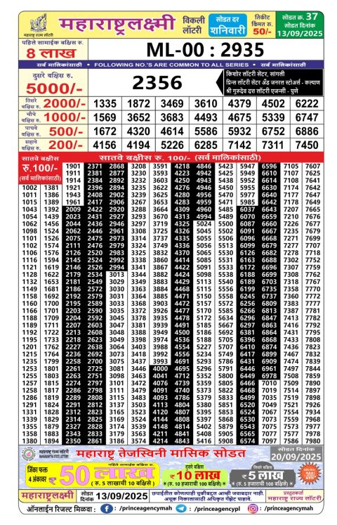 Maharashtra Weekly Lottery 4.15PM Result 13.09.2025