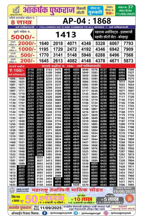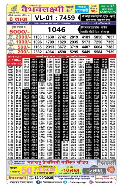 Maharashtra Weekly Lottery 4.15PM Result 12.09.2025
