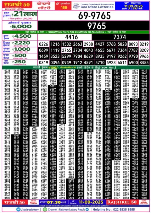 11 September 2025 7.30pm – Goa state Rajshree 50 Lotteries 7.30pm Result has been declared for 11/09/2025 . First prize…