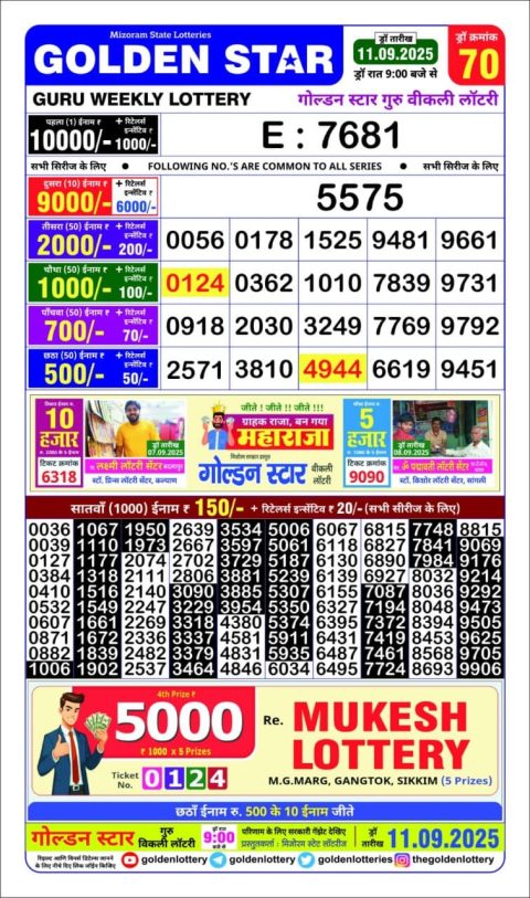 12 September 2025 7pm – Mizoram state Dear Lotteries 7pm Result has been declared for 12/09/2025 . First prize rupees…
