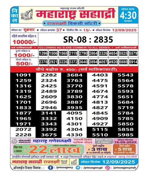 Maharashtra Sahyadri Weekly Lottery 4.30PM Result 12.09.2025