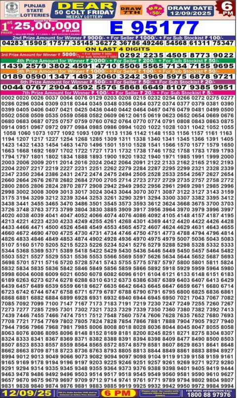 Punjab State Dear 50 Daily Lottery 6PM Result 12.09.2025
