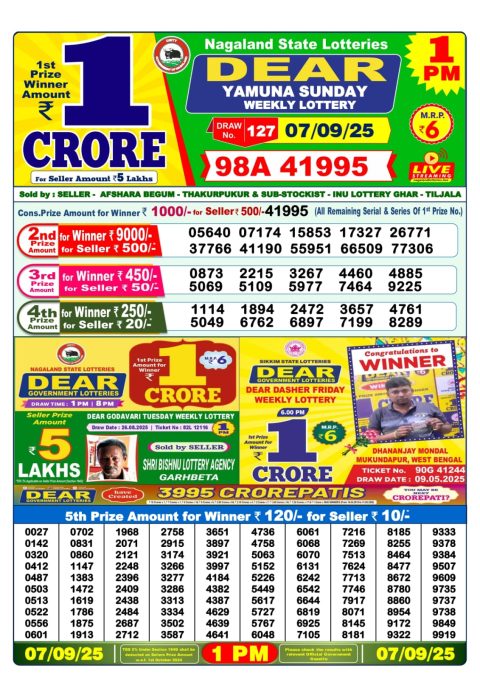 07 September 2025 1pm – Nagaland state lotteries. Dear Lottery 1pm Result has been declared for 07/09/2025 . First prize…